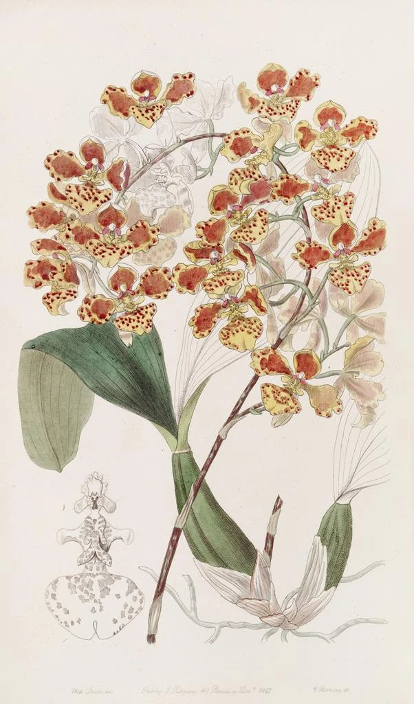 Sydenham Edwards, verksam i början av 1800-talet, är erkänd som en av de stora namnen inom botanisk illustration. Påverkad av den romantiska rörelsen, lyckades han fånga växternas skönhet med en unik känslighet. Hans verk, ofta publicerade i botaniska verk, vittnar om hans engagemang för att hylla den blomstrande mångfalden. L'oncid frangé ingår i en period då intresset för botanik var i full blom, och Edwards spelade en nyckelroll i att popularisera denna kunskap genom sina illustrationer. Hans arv består, och inspirerar fortfarande idag botanikkunniga och konstälskare.