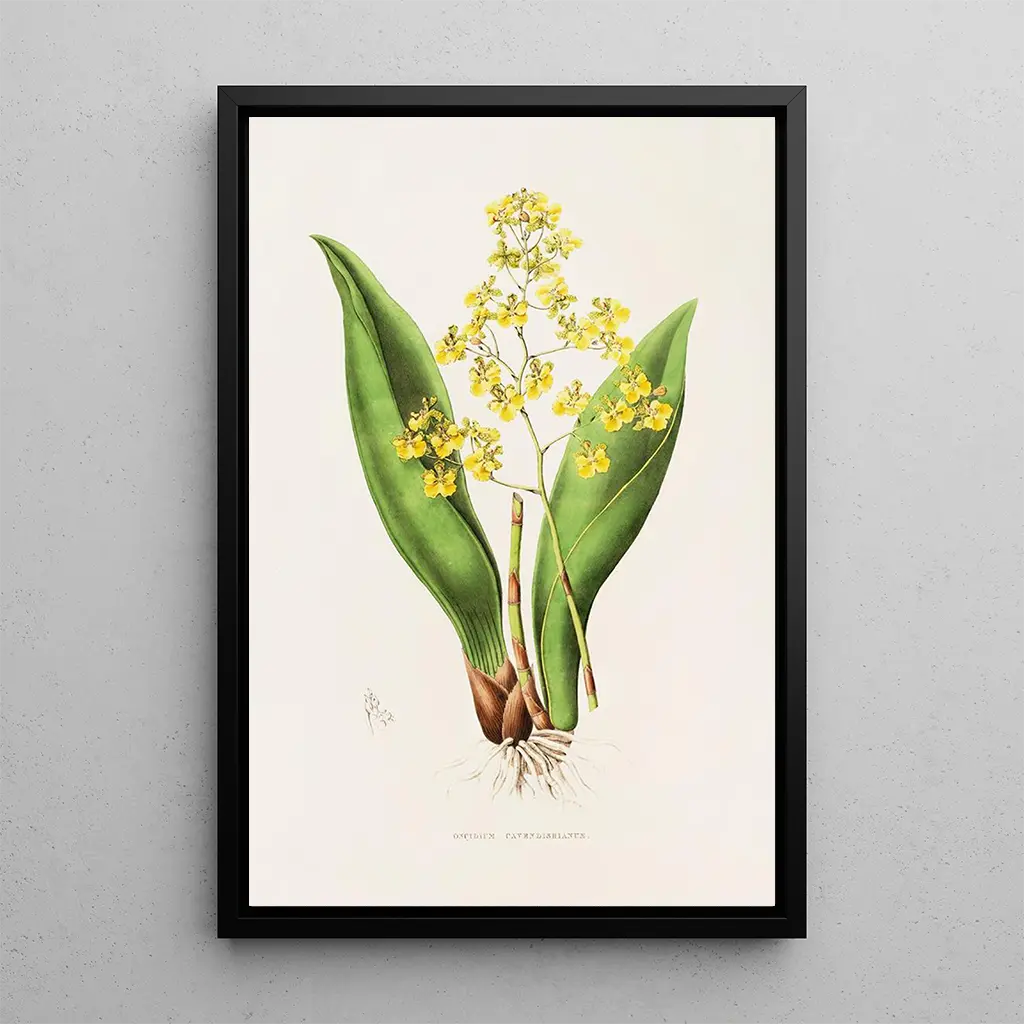 Konsttrycket av Oncidium Cavendishianum är ett perfekt dekorativt föremål för att försköna ditt hem, oavsett om det är i ett vardagsrum, ett kontor eller ett sovrum. Dess utskriftskvalitet och trohet mot de ursprungliga färgerna gör det till en fängslande tavla som fångar blickar och väcker beundran. Genom att integrera detta konsttryck i din inredning tillför du en touch av natur och elegans till ditt utrymme, samtidigt som du njuter av den estetiska attraktionen av ett verk som hyllar blomsterskönhet. Det är ett perfekt val för dem som vill kombinera konst och natur i sin vardag.