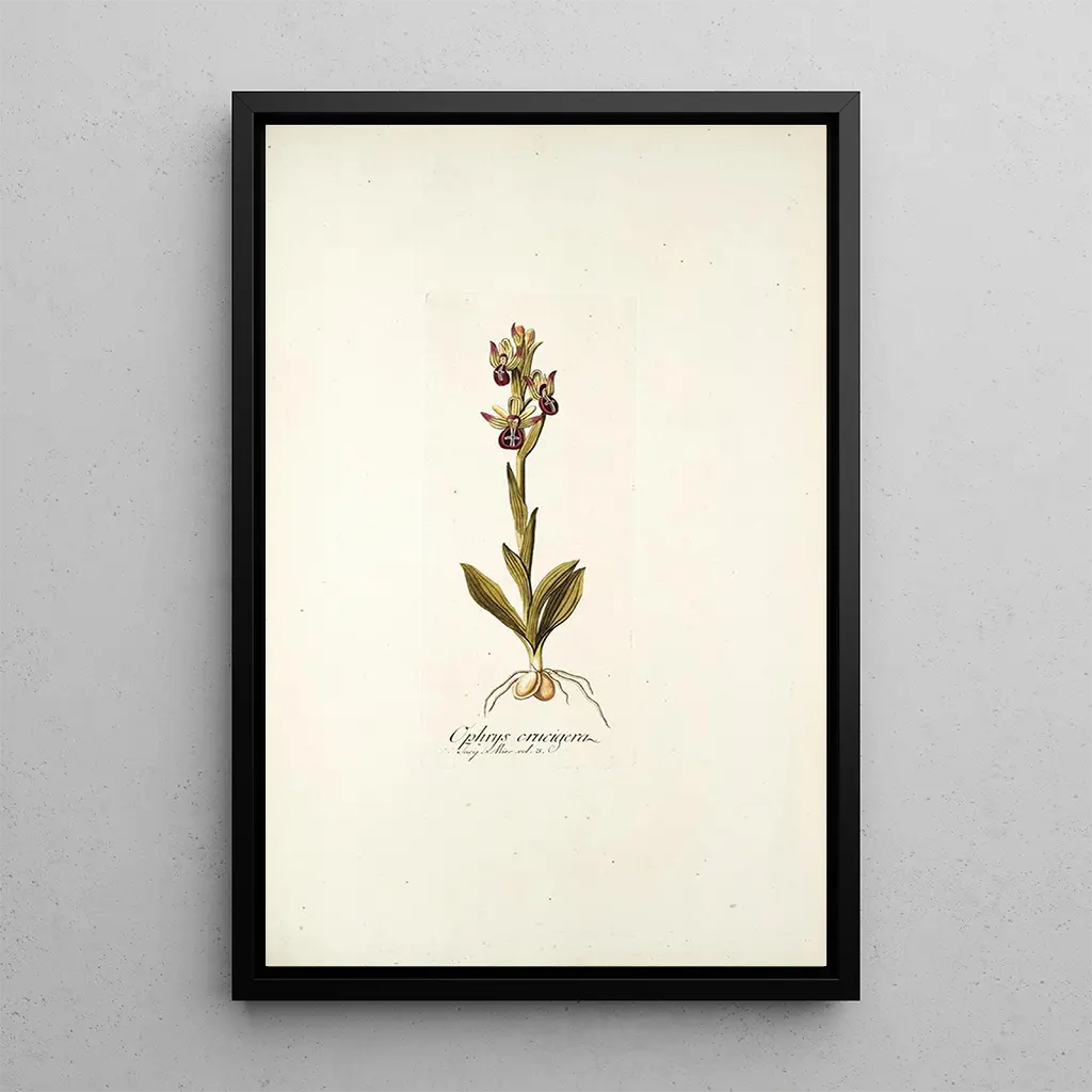 Konsttrycket av "Ophrys crucigera" är ett dekorativt val som harmoniskt passar in i olika miljöer, oavsett om det är ett kontor, ett vardagsrum eller ett sovrum. Dess utskriftskvalitet garanterar trohet mot detaljerna i det ursprungliga verket, samtidigt som det tillför en touch av elegans till din inredning. Denna canvastavla, med sitt estetiska tilltal, inbjuder till eftertanke och uppskattning av naturen, vilket gör den till ett dekorativt element som berikar ditt boende samtidigt som den hyllar blomsterprakten.