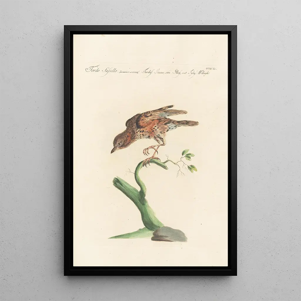 L'œuvre 'Ornithologia metodice digesta Pl275' av Saverio Manetti framstår som en livfull hyllning till den ornithologiska mångfalden. Med klara färger och slående detaljer är varje fågel avbildad i sin fulla prakt. Manettis teknik, som kombinerar akvarell och teckning, skapar en levande, nästan påtaglig atmosfär. Detta konsttryck erbjuder en fördjupning i den fågelrika världen, vilket gör det möjligt att uppskatta skönheten och komplexiteten hos dessa varelser. Taveln inbjuder till eftertanke och förvandlar vilket utrymme som helst till ett naturens helgedom.