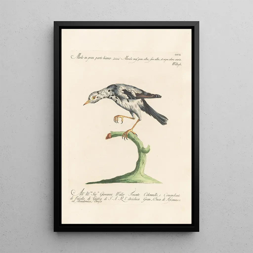 Ornithologia metodiskt digerad Pl284-konsttryck av Saverio Manetti fördjupar oss i en fascinerande värld där varje detalj av fåglar är noggrant illustrerad. De livfulla färgerna och de delikata nyanserna i fjädrarna fångar uppmärksamheten, medan precisionen i tecknen vittnar om en enastående teknisk skicklighet. Atmosfären i detta verk väcker nyfikenhet och förundran inför den fågelrika mångfalden, och bjuder in betraktaren att utforska naturens subtiliteter. Detta konsttryck, en sann hyllning till fågelvärldens skönhet, är ett erkännande av den flygande faunans rikedom.