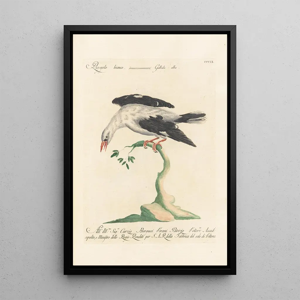 Saverio Manetti, naturalist och konstnär från 1700-talet, lyckades förena vetenskap och konst i sina verk. Påverkad av upptäckterna i sin tid, ägnade han sitt liv åt att studera fåglar, och strävade efter att avbilda dem med vetenskaplig precision samtidigt som han behöll en fängslande estetik. Hans arbete är en del av barockrörelsen, där naturen hyllas genom realistiska detaljer och dynamiska kompositioner. Manetti har lämnat ett varaktigt arv inom ornitologins område, och hans konsttryck, som detta, fortsätter att inspirera konst- och naturentusiaster.
