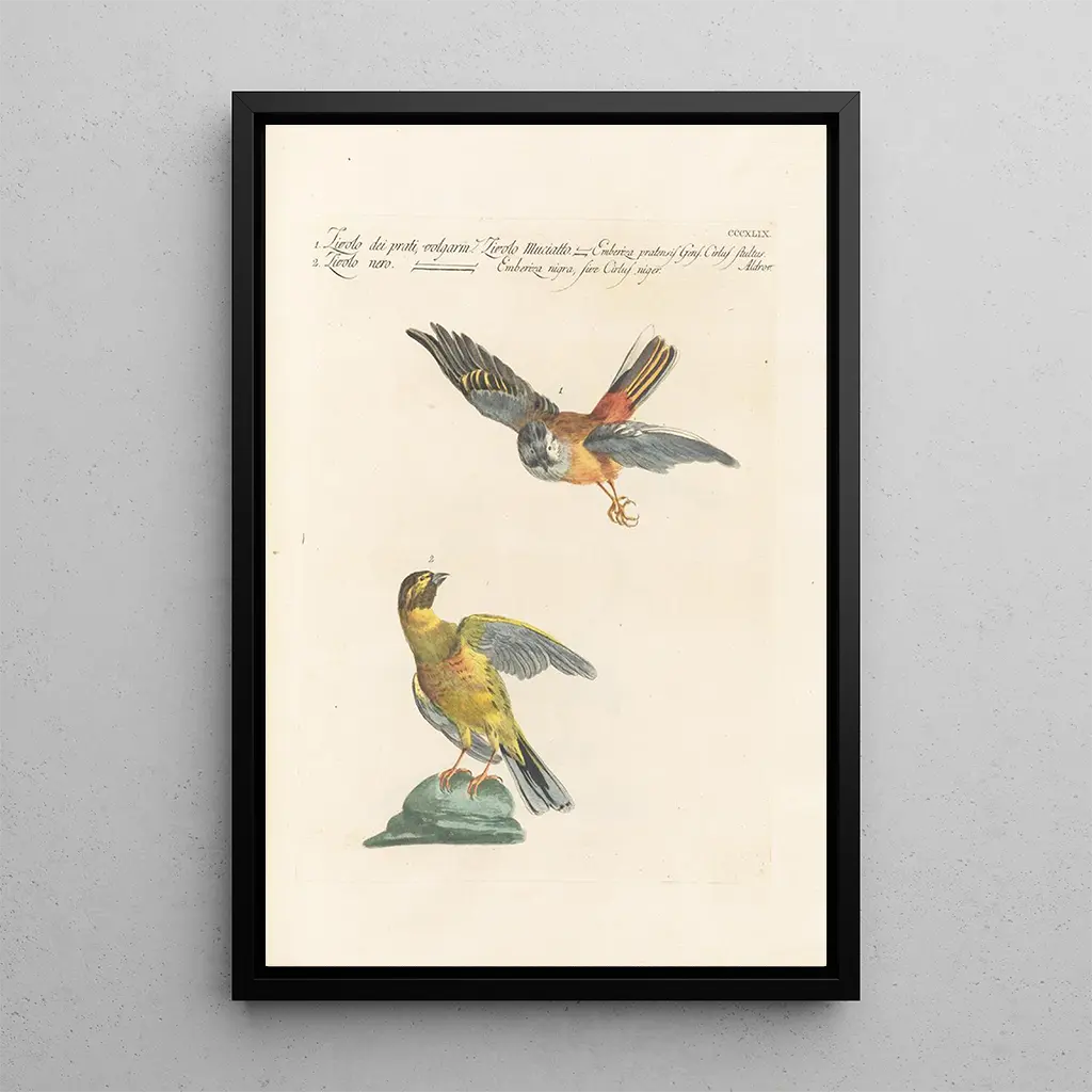 Den konsttryck av Ornithologia metodiskt sammanställd Pl331 fördjupar oss i en fascinerande värld där naturen uttrycker sig med glans. Saverio Manettis delikata illustrationer fångar fåglarnas elegans och avslöjar minucösa detaljer i fjädrar och poser. De livfulla och harmoniska färgerna, från djupa blå nyanser till lysande gult, skapar en levande och glad atmosfär. Varje element i kompositionen tycks dansa under ljuset och bjuder in betraktaren till en noggrann reflektion över fågelkonsten. Detta verk, både vetenskapligt och konstnärligt, vittnar om en passion för att observera naturen.