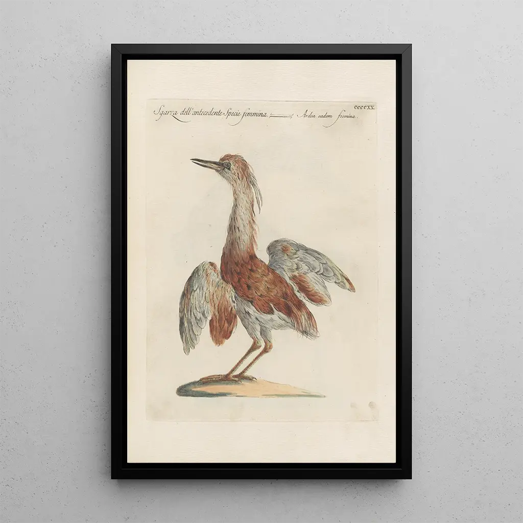 Saverio Manetti, verksam på 1700-talet, är erkänd för sitt betydande bidrag till ornitologi och naturalistisk konst. Påverkad av tidens vetenskapliga upptäckter, lyckades han kombinera noggrann observation med förfinad estetik i sina verk. Manetti ägnade sin karriär åt att studera fåglar, och blev en referens inom området tack vare sina precisa och poetiska illustrationer. Hans arbete vittnar om en tid då konst och vetenskap möttes, och erbjuder en berikad syn på naturen. Hans konsttryck, som det av Pl402, är värdefulla vittnesmål om denna synergi.