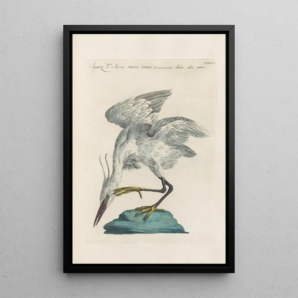 L'œuvre "Ornithologia methodice digesta Pl405" av Saverio Manetti är ett verkligt hyllning till fåglarnas skönhet. Denna konsttryck utmärker sig med sina livfulla färger och sin noggrant utarbetade komposition, där varje detalj framhävs. De delikata fjädrarna och de graciösa poserna hos fåglarna som fångats skapar en atmosfär av lugn och förundran. Den graveringsteknik som används av Manetti gör det möjligt att exakt återge texturen på fjädrarna, vilket skapar en immersiv visuell upplevelse som förflyttar betraktaren till en fascinerande naturlig värld.