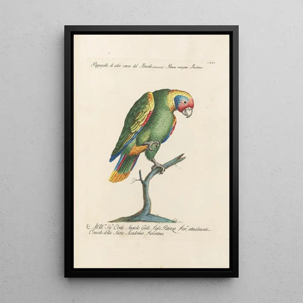 I denna konsttryck av Ornithologie méthodiquement disposée Pl116 fördjupar sig Saverio Manetti i en värld där varje fågel presenteras med vetenskaplig precision och konstnärlig känsla. De livfulla färgerna och de minutiösa detaljerna i fjädrarna skapar en levande och fängslande atmosfär. Kompositionen, noggrant utformad, lyfter fram den fågelrika mångfalden, där varje art framhävs i sitt eget utrymme. Tekniken med etsning, kombinerad med en naturalistisk ansats, ger konstverket en djup som inbjuder till förlängd observation. Man kan nästan känna suset av vingar och fåglarnas sång, vilket gör detta konstverk nästan levande.