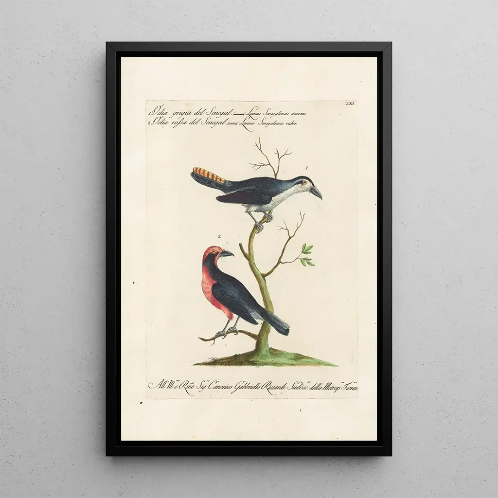 Saverio Manetti, naturalist och konstnär från 1700-talet, lyckades förena vetenskap och konst i sina verk. Under en tid då studiet av fåglar tog ett stort steg framåt, hämtade han inspiration från samtidens upptäckter för att skapa illustrationer med enastående precision. Manetti påverkades av sina samtida, men hans unika stil utmärks av särskild uppmärksamhet på anatomiska detaljer och en palett av vibrerande färger. Hans verk, inklusive detta konsttryck av Ornithologie méthodiquement disposée Pl061, vittnar om vikten av observation inom konsten och samspelet mellan natur och estetik.