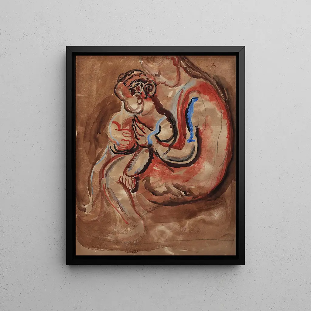 I det vidsträckta panorama av konsthistoria lyckas vissa verk att överskrida epoker och beröra själar på ett oförglömligt sätt. "Utan titel Mor och barn" av Frances Hodgkins utmärker sig genom sin gripande skildring av relationen mellan en mor och hennes barn. Denna målning, även om den saknar en tydlig titel, väcker universella känslor, de av ömhet och skydd. Genom en palett av delikata färger och stiliserade former bjuder Hodgkins in oss att dyka in i en intim värld där sötma och djup samspelar. Scenen, både enkel och full av mening, klingar med en intensitet som fängslar betraktaren och får denne att reflektera över familjebanden.