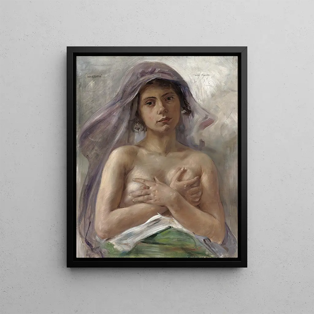 Upptäck detta fantastiska konsttryck av Innocence av den tyske konstnären Lovis Corinth. Denna reproduktion fångar den ursprungliga målningens subtila nyanser och känslomässiga djup, perfekt för att förhöja ditt hem eller kontor.