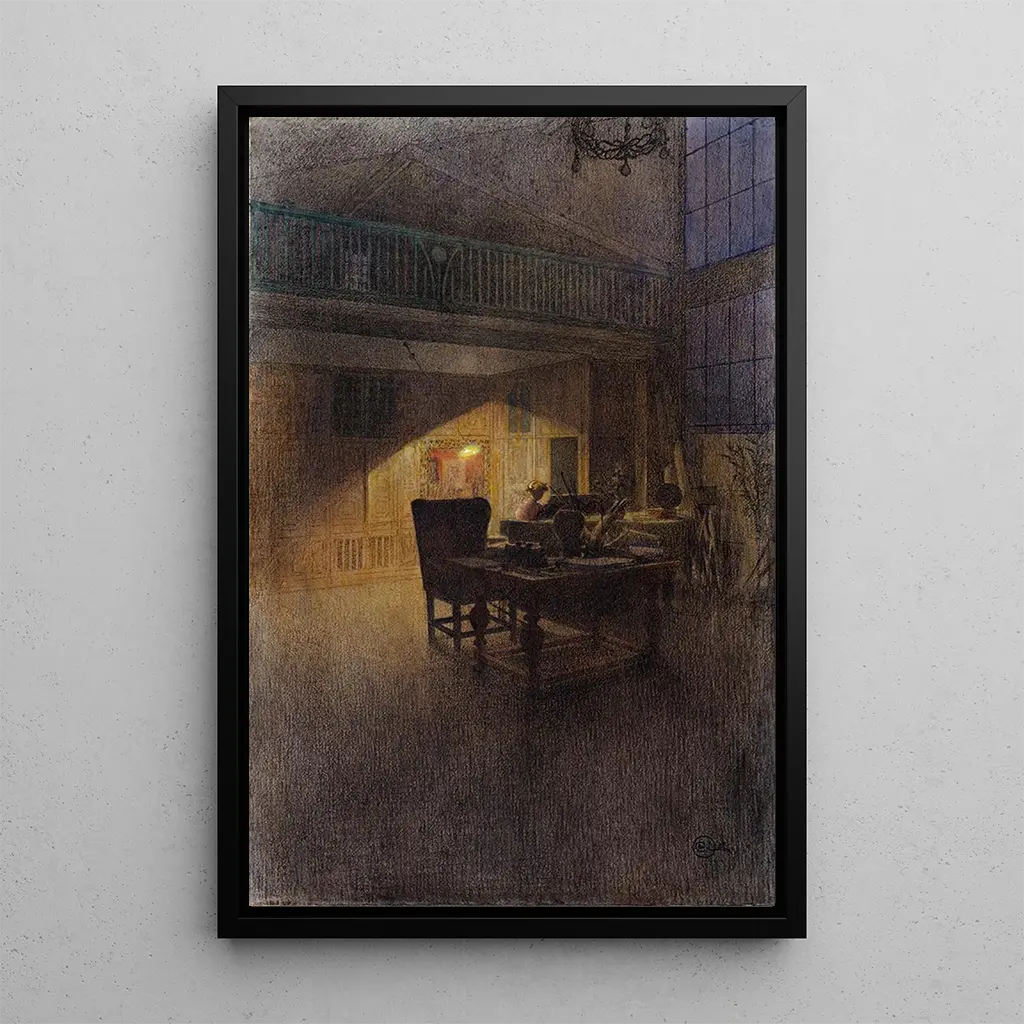 Carl Larsson, en ikonisk figur inom den svenska konstnärsrörelsen i slutet av 1800-talet, lyckades fånga essensen av det familjära livet genom sina verk. Påverkad av Art Nouveau och realism, utvecklade Larsson en unik stil som kombinerade noggranna detaljer med ljusa atmosfärer. Hans karriär, präglad av vistelser i Frankrike och samarbeten med hantverkare, har djupt påverkat den skandinaviska inredningskonsten. "Vid piano" är ett av hans många verk som vittnar om hans engagemang för det inhemska livet och skönheten i enkla ögonblick, vilket gör honom till en oumbärlig konstnär i sin tid.