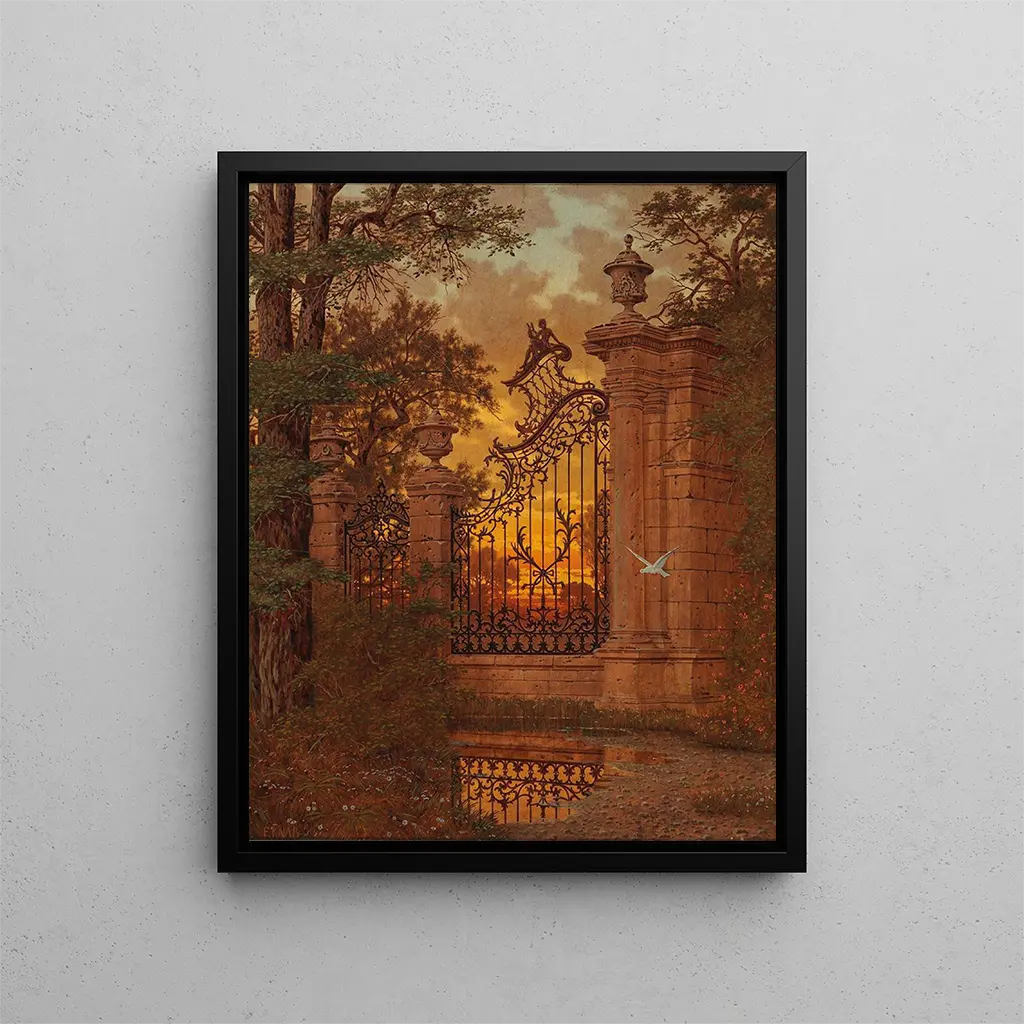 I det vidsträckta panorama av konsthistoria utmärker sig vissa verk genom sin förmåga att fånga essensen av ett ögonblick, en plats eller en känsla. "Vid slottet - Ferdinand Knab" är ett av dessa verk som omedelbart för oss in i en värld som är både intim och majestätisk. Tavlan, med sin noggrant orkestrerade komposition, väcker en känsla av lugn och eftertanke. Genom detta verk bjuder Knab in oss att tränga in i en värld där tiden tycks vara hängd, där varje detalj är en inbjudan till flykt. När vi fördjupar oss i detta förtrollande landskap känner vi naturens skönhet och den harmoni som råder i denna miljö inbäddad mellan väggarna av ett slott.