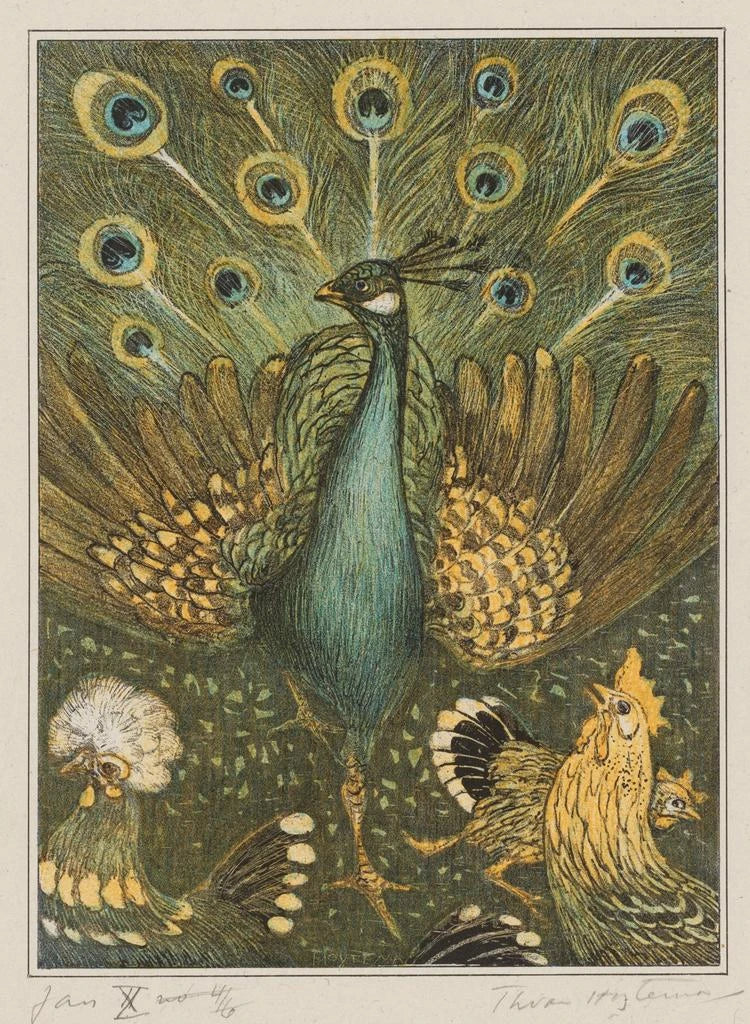 Målning påfågel med höns - Theo van Hoytema | Konsttryck