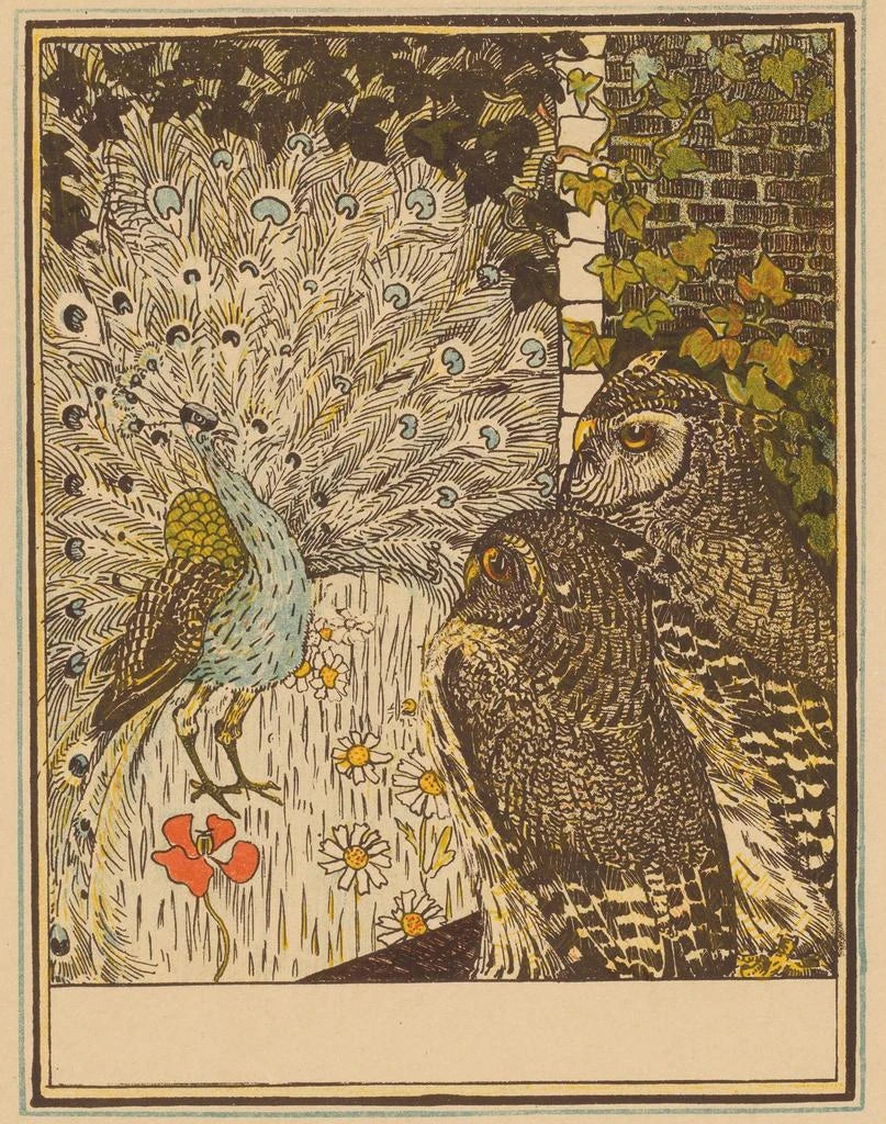 Paon et deux hiboux - Theo van Hoytema