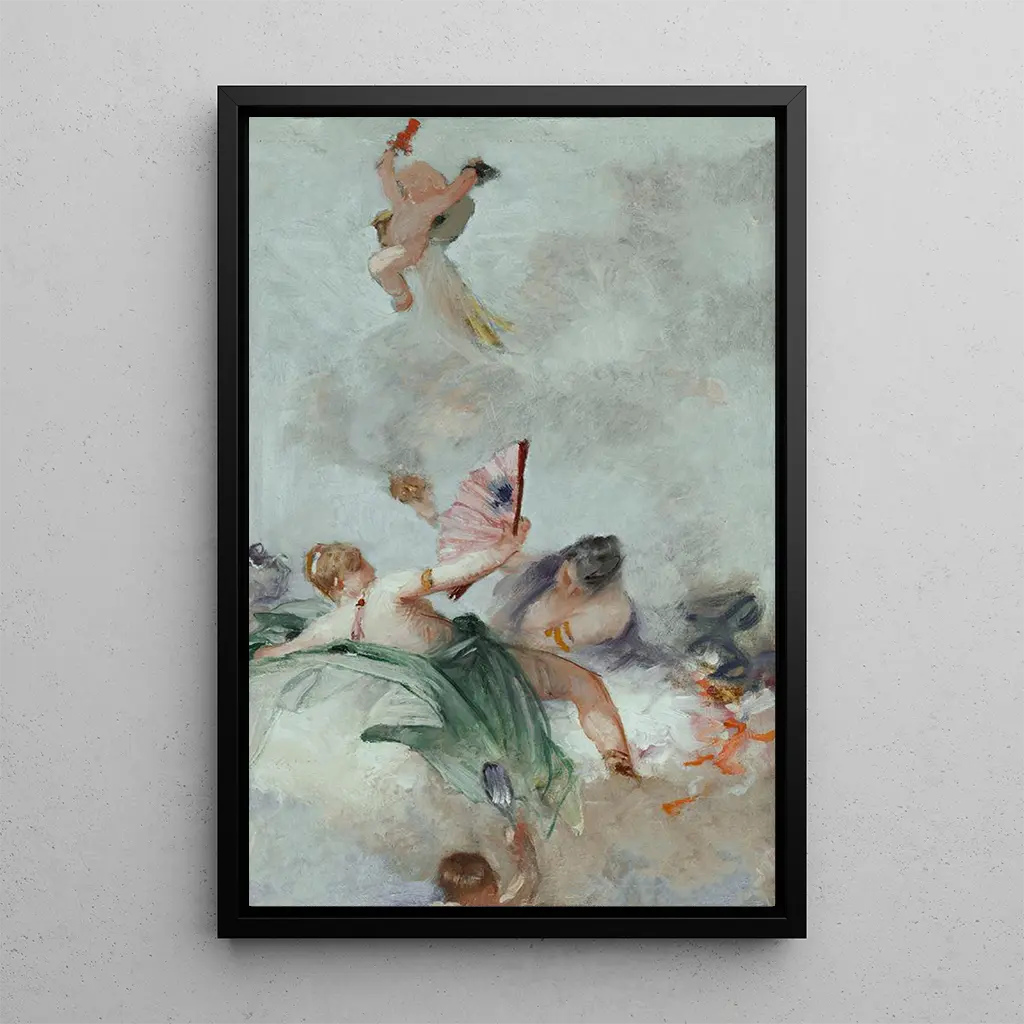 Les Parfums, ett ikoniskt konsttryck av Gabriel Ferrier, framkallar en förtrollande atmosfär där blomsterprakt möter mjukheten i pastellfärger. Tavlan, rik på detaljer, visar ömtåliga kvinnor omgivna av frodiga buketter, vilket skapar en fängslande visuell harmoni. Nyansen av rosa, lila och grönt smälter samman med grace, medan ljuset tycks smeka modellerna ansikten och tillföra scenen en nästan eterisk dimension. Denna komposition inbjuder till ett lugnt eftertanke, där varje blick avslöjar nya subtiliteter och en doft av flykt.