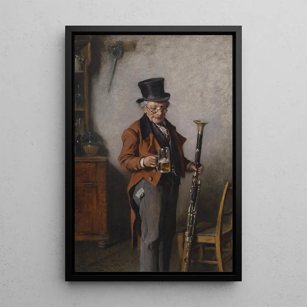 I "Pause concert" fångar Hermann Kern ett ögonblick av intimitet och lugn. Kompositionen visar musiker som tar en paus, deras ansikten fyllda av koncentration och avslappning. De mjuka och varma färgerna, som blandar nyanser av brunt och guld, skapar en lugnande, nästan meditativ atmosfär. Oljetekniken ger liv åt detaljerna, från instrument till konstnärernas uttryck, vilket gör scenen levande och realistisk. Varje penseldrag verkar berätta en historia och bjuder in betraktaren att fördjupa sig i denna kreativa bubbla.