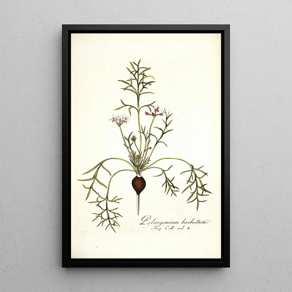 Konsttrycket av Pelargonium barbatum är ett perfekt dekorativt inslag för att tillföra naturens skönhet till ditt hem. Oavsett om det är i ett vardagsrum, ett kontor eller ett sovrum, passar detta konsttryck utmärkt i olika inredningsstilar, från klassiskt till modernt. Dess tryckkvalitet garanterar en trogen återgivning av färger och detaljer i originalverket, vilket ger ett estetiskt tilltalande intryck. Genom att välja detta konsttryck, väljer du ett verk som inte bara förskönar ditt utrymme, utan också framkallar harmoni och fridfullhet från naturen, vilket gör varje blick till ett ögonblick av eftertanke.