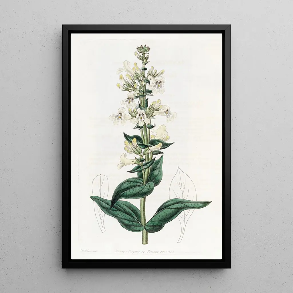 Det konsttryck "Pentstémon à pointe effilée" av Sydenham Edwards är en livfull hyllning till växtvärlden. Med sina lysande färger och delikata former drar detta verk omedelbart till sig uppmärksamheten. Nyansen av rosa och lila blandas med grace, vilket skapar en slående kontrast som framhäver den unika strukturen hos växten. Akvarelltekniken, som Edwards behärskar med skicklighet, fångar blommornas lätthet samtidigt som den ger ett imponerande visuellt djup. Denna målning förmedlar en känsla av friskhet och vitalitet, inbjuder till en lugn reflektion.