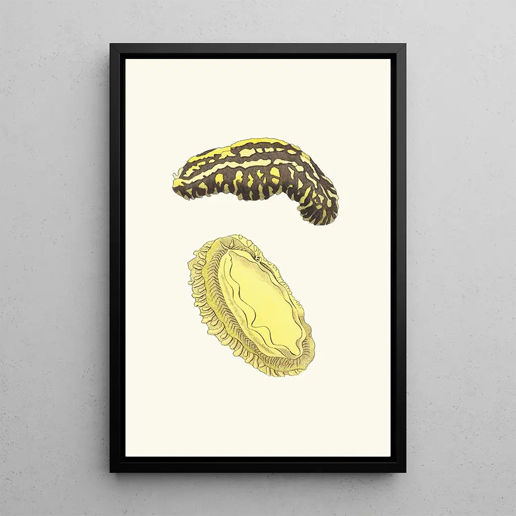 Konsttrycket av Phyllidie triligne av George Shaw tar oss med till en livfull undervattensvärld full av färg. Detta verk, rikt på nyanser av grönt och blått, lyfter fram skönheten hos nudibranchier, dessa fascinerande marina varelser. Shaw, med sin precisa och delikata stil, lyckas fånga texturen och ljusstyrkan hos dessa djur, vilket skapar en nästan drömlik atmosfär. Varje detalj, från mönstren på kroppen till ljusreflexerna, framkallar en undervattensdans och bjuder in betraktaren att beundra den marina mångfalden.