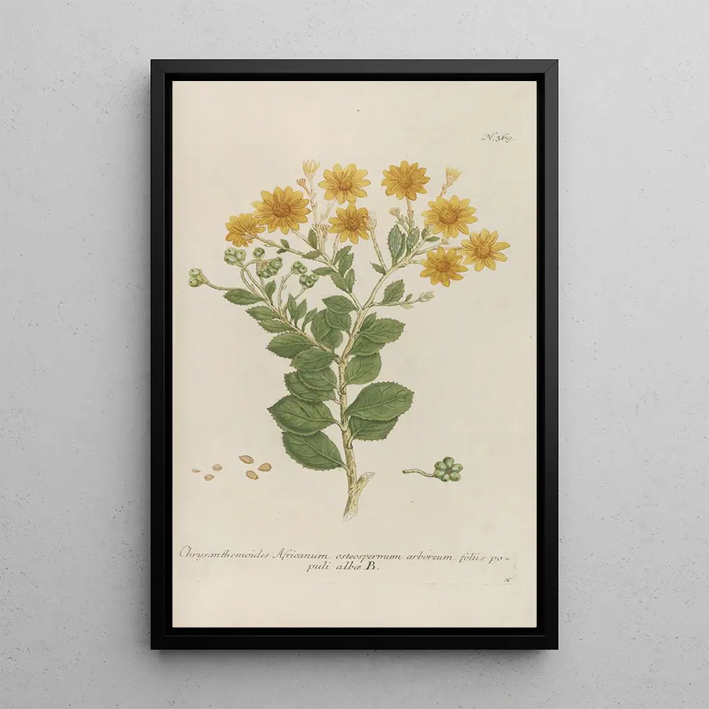 Konsttrycket av Phytanthoza ikonografia Pl092 är ett fascinerande verk som fördjupar betraktaren i en värld av livfulla färger och noggranna detaljer. Varje växt är avbildad med en anmärkningsvärt precision, vilket framhäver skönheten och mångfalden i flora. De strålande nyanserna, från djupa gröna till ljusa gula, skapar en livlig och glad atmosfär. Graveringstekniken som Johann Wilhelm Weinmann använder möjliggör fångst av petalernas finhet och stjälkarnas styrka, vilket ger en verklig inbjudan till botanisk utforskning.