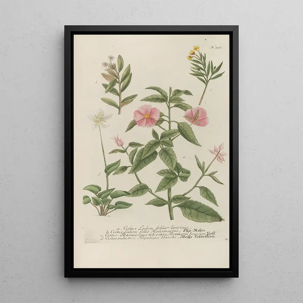 Den konsttryck av Phytanthoza ikonografiya Pl115 fördjupar oss i en fascinerande botanisk värld, där varje detalj är noggrant framhävd. De livfulla färgerna, från frodiga gröna nyanser till blommornas strålande toner, skapar en levande och dynamisk atmosfär. Den graveringsteknik som används av Johann Wilhelm Weinmann gör det möjligt att fånga formernas ömtålighet och texturernas rikedom, vilket ger en immersiv visuell upplevelse. Detta konsttryck inbjuder till att betrakta den naturliga skönheten och väcker en känsla av förundran inför floraens mångfald.