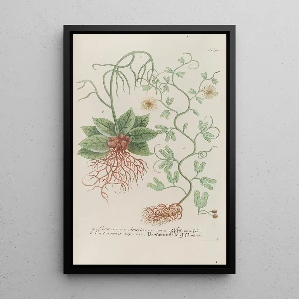 Den konsttryck av Phytanthoza iconographia Pl135, utförd av Johann Wilhelm Weinmann, för oss till hjärtat av en rik botanisk mångfald. De livfulla nyanserna och de raffinerade detaljerna av de presenterade växterna framkallar en vibrerande och livfull natur. Tack vare en noggrann graveringsteknik lyckas Weinmann fånga själva essensen av varje art, vilket skapar en atmosfär som är både vetenskaplig och konstnärlig. Detta verk inbjuder till eftertanke och förundran inför den naturliga världens skönhet.