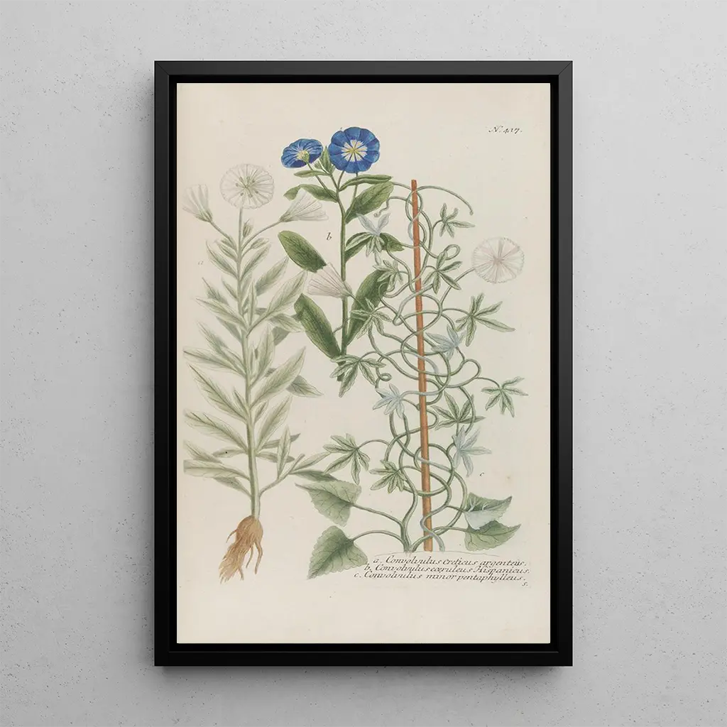 Konsttryck av Phytanthoza iconographia Pl140 inbjuder till en fascinerande utforskning av naturen. Detta verk, skapat av Johann Wilhelm Weinmann, utmärker sig genom sin noggranna komposition och sina livfulla färger. Detaljerna av växterna, noggrant observerade, avslöjar en raffinerad graveringsteknik som fångar essensen av varje art. Atmosfären som avtecknar sig i denna målning är både lugnande och stimulerande, vilket uppmuntrar betraktaren att fördjupa sig i en rik och varierad växtvärld. De delikata nyanserna och de subtila skuggorna tillför djup till bilden, vilket skapar en verklig inbjudan till eftertanke.