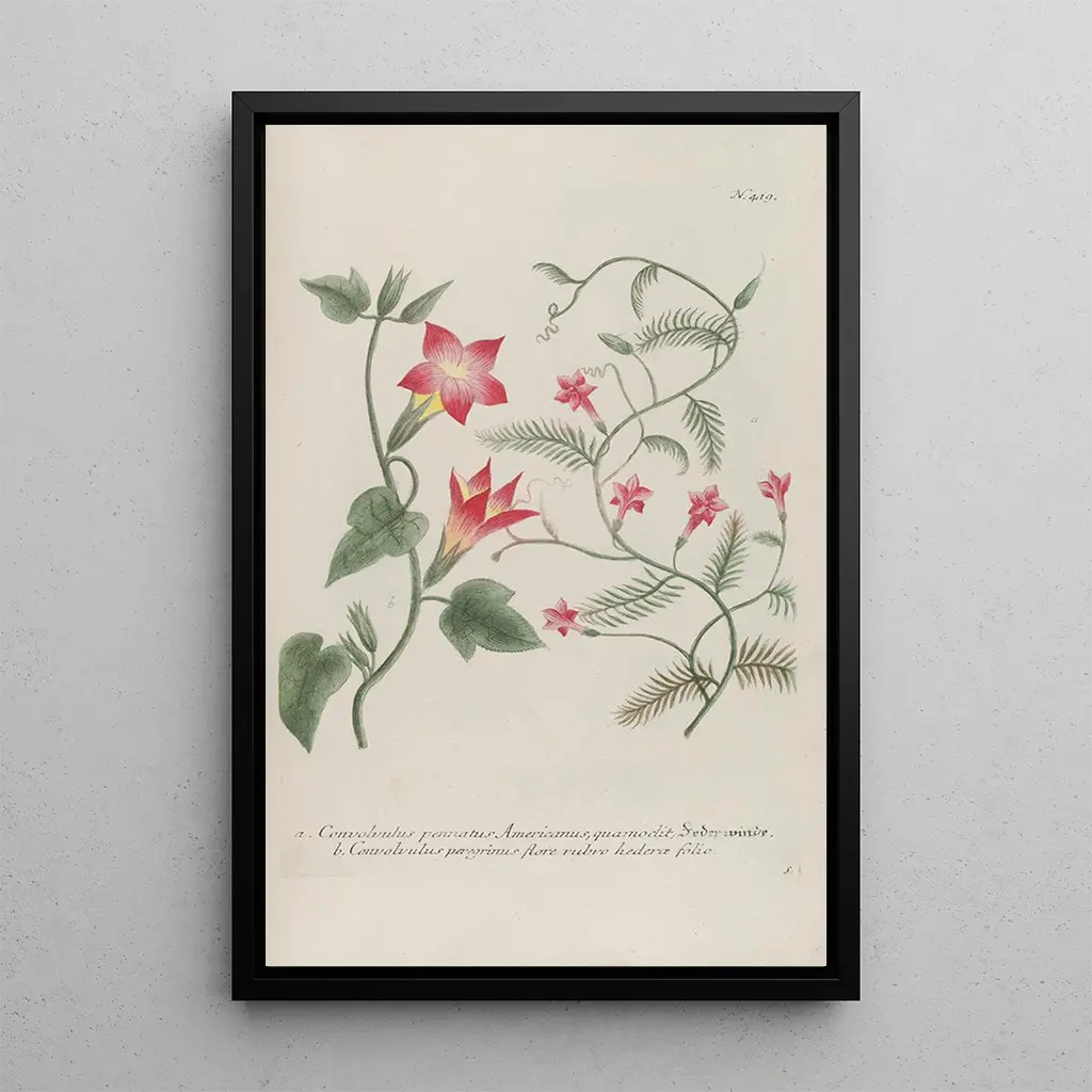 Konsten att skapa konsttryck av Phytanthoza ikonografia Pl142 fördjupar oss i en rik och färgstark botanisk värld. Detta verk, utfört med enastående precision, framhäver en mängd exotiska växter, vars livfulla nyanser och minutiösa detaljer fängslar betraktaren. Skiftningarna mellan grönt, gult och rött vävs samman i harmoni, vilket skapar en livfull och dynamisk atmosfär. Den graveringsteknik som Johann Wilhelm Weinmann använder understryker den naturliga skönheten hos exemplaren och inbjuder till att utforska den botaniska mångfalden. Varje element i kompositionen verkar berätta en historia, vilket avslöjar den komplexitet och elegans som präglar den växtliga världen.