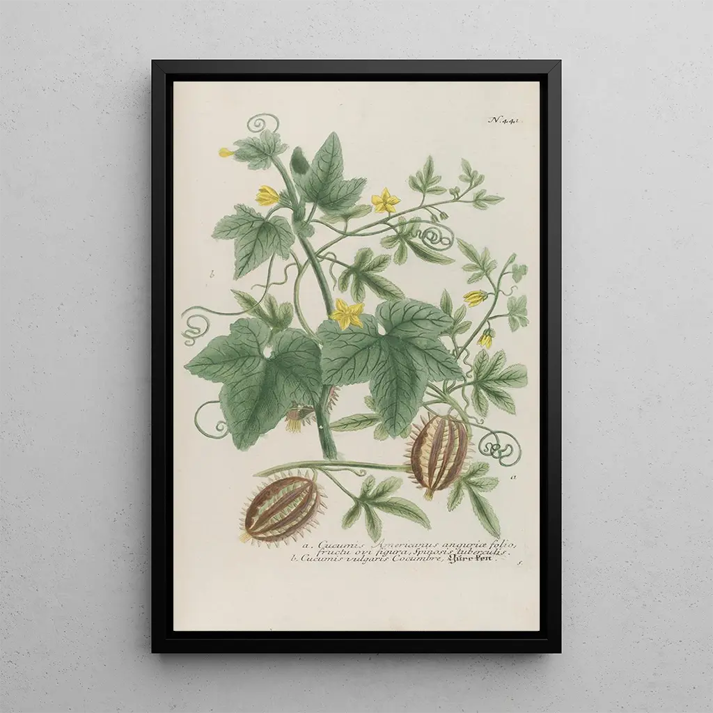 Konsttrycket av Phytanthoza ikonografiska Pl164 förtrollar med sin delikata avbildning av sällsynta och exotiska växter. Varje detalj, från blommornas kronblad till stjälkarna, är återgiven med en precision som vittnar om konstnärens skicklighet. De livfulla färgerna, från djupa gröna till pastellnyanser, skapar en atmosfär som är både lugnande och dynamisk. Detta verk inbjuder till att fördjupa sig i en fascinerande botanisk värld, där naturens skönhet lyfts fram med en unik konstnärlig känsla.