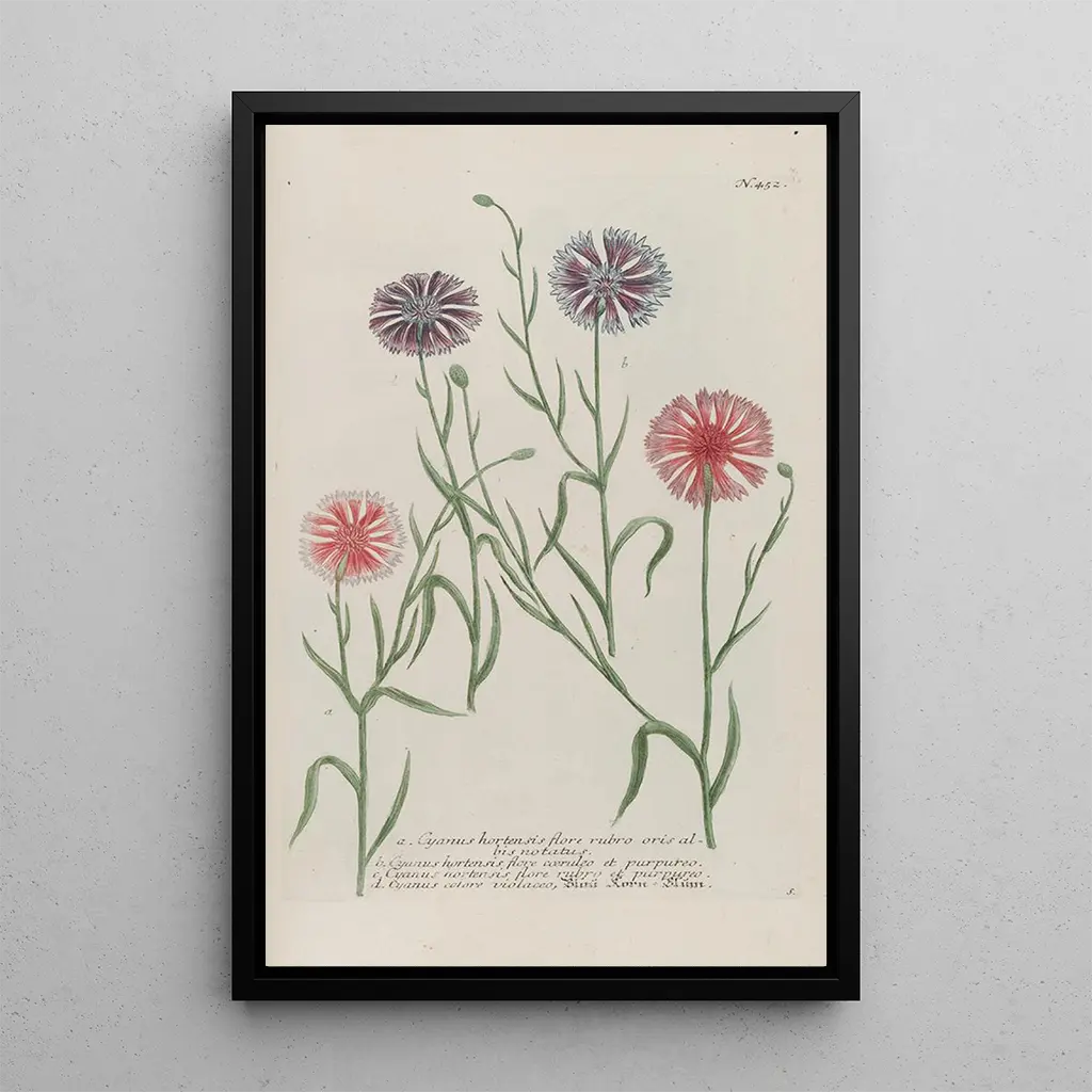 Den konsttryck av verket "Phytanthoza iconographia Pl175" av Johann Wilhelm Weinmann fördjupar oss i en rik och färgstark botanisk värld. Detta konsttryck, med sina noggranna detaljer, framhäver en mängd exotiska växter och illustrerar naturens skönhet. De livfulla färgerna, från klara gröna till djupa röda, skapar en livlig och dynamisk atmosfär. Graveringstekniken som Weinmann använder gör det möjligt att återge varje blad och blomblad med enastående precision, vilket inbjuder betraktaren till en noggrann reflektion över den florala mångfalden.