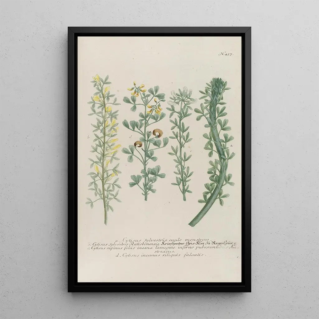 Konsten att skapa konsttryck av Phytanthoza ikonografiska Pl180 fördjupar oss i en fascinerande botanisk värld. Detta verk, skapat av Johann Wilhelm Weinmann, utmärker sig genom sin noggranna komposition och sina livfulla färger. De delikata detaljerna av växterna, återgivna med en anmärkningsvärt precision, framkallar en atmosfär av lugn och förundran. Nyanser av grönt, gult och rosa vävs samman i harmoni, vilket skapar ett levande konstverk som inbjuder till utforskning av naturens under. Varje element i målningen verkar berätta en historia, en hyllning till skönheten hos växtarter.