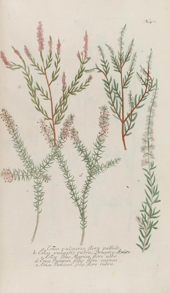 Den konsttryck av Phytanthoza iconographia Pl204 för oss till en frodig värld, där varje växt lyfts fram med en exceptionell känsla för detaljer. Johann Wilhelm Weinmann ger oss genom detta verk en fascinerande vision av floran, som avslöjar nyanser av färger och former som fängslar betraktaren. Den akvarellteknik som används möjliggör skapandet av ljus- och transparenseffekter, och hyllar den flyktiga skönheten hos blommorna. Detta konsttryck inbjuder till eftertanke och förundran, och gör varje detalj till ett element att upptäcka.