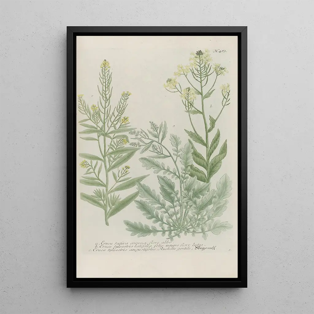 Den konsttryck av Phytanthoza ikonografiya Pl206 är ett fascinerande verk som lyfter fram mångfalden och skönheten hos exotiska växter. Med sina livfulla färger och noggranna detaljer förflyttar denna målning betraktaren till en frodig trädgård där varje växt tycks vibrera av liv. Johann Wilhelm Weinmanns graveringsteknik hyllar den botaniska rikedom, samtidigt som den skapar en atmosfär av lugn och förundran. Detta verk inbjuder till noggrann eftertanke och avslöjar naturens komplexitet och harmoni.