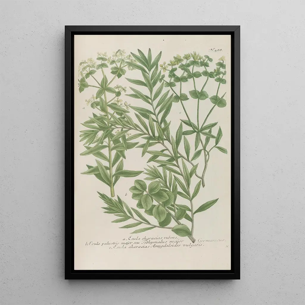 Konsttrycket av Phytanthoza ikonografien Pl211 tar oss med till en frodig trädgård, där varje växt är avbildad med enastående precision. Johann Wilhelm Weinmann lyckas genom detta verk fånga mångfalden och komplexiteten i den växtliga världen. De livfulla nyanserna och de finstämda detaljerna i illustrationerna skapar en atmosfär som är både lugnande och inspirerande. Graveringstekniken, kombinerad med en skarp känsla för estetik, hyllar naturens skönhet och bjuder in betraktaren att utforska varje element med nyfikenhet.