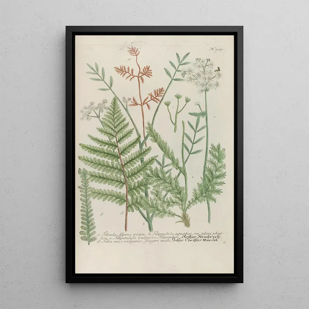 Konsttrycket av Phytanthoza iconographia Pl232 inbjuder oss att beundra den mångfald och komplexitet som finns i växternas värld. Med sina livfulla färger och noggranna detaljer väcker detta verk av Johann Wilhelm Weinmann en känsla av liv och rörelse. Skiftningarna mellan grönt, lila och orange smälter samman i harmoni och skapar en vibrerande och glad atmosfär. Varje element är omsorgsfullt återgivet, vilket vittnar om konstnärens expertis i att observera och avbilda växter. Denna målning är en sann hyllning till naturen, som inbjuder till eftertanke och förundran.