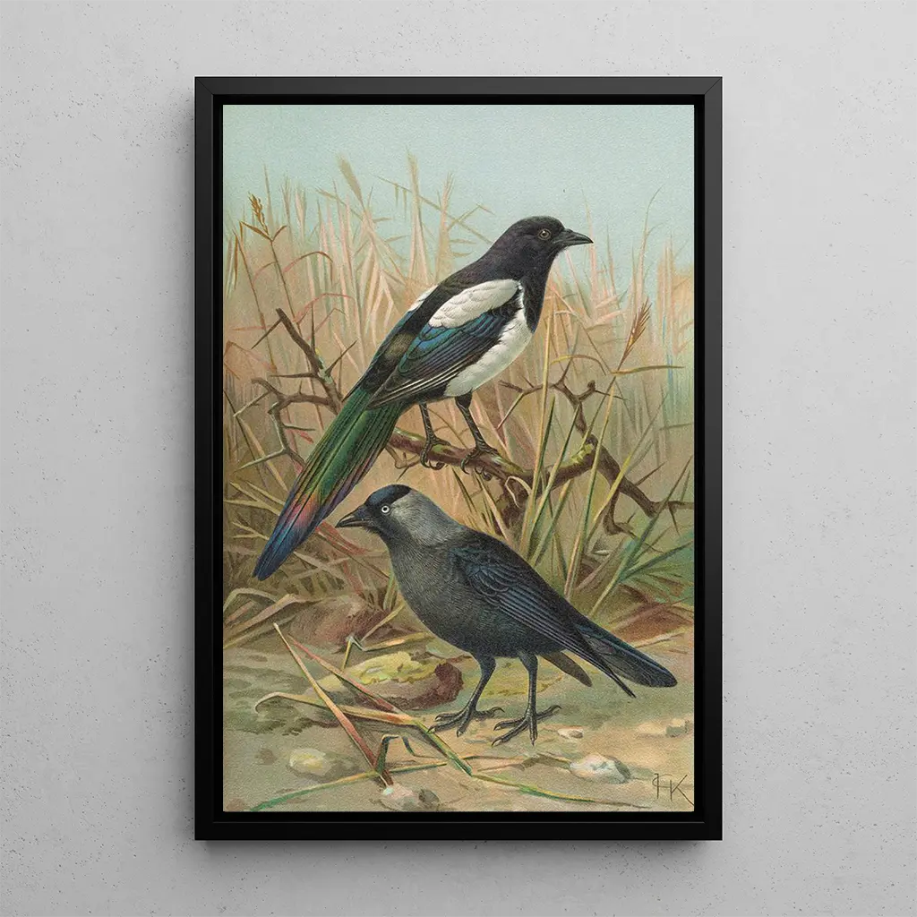 Konsttrycket Pica pica Lycus monedula är ett perfekt dekorativt val för olika utrymmen som vardagsrummet, kontoret eller till och med sovrummet. Dess utskriftskvalitet och färgprecision gör det till ett fängslande konstverk som fångar blickar. Genom att integrera detta verk i din inredning tillför du en touch av elegans och natur till din omgivning. Den estetiska dragningskraften hos detta konsttryck, i kombination med dess historia och kontext, gör det till ett fascinerande samtalsämne samtidigt som det berikar ditt boende med en konstnärlig och kulturell dimension.