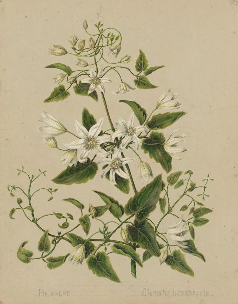 I 'Pikiarero Clematis hexasepala' ger Sarah Featon oss en poetisk bild av en typisk växt för Nya Zeeland. Hennes illustration utmärker sig genom noggranna detaljer och en palett av mjuka färger som framkallar denna arters ömtålighet. Som botanisk konstnär har Featon lyckats fånga essensen av den lokala floran samtidigt som hon integrerar en estetik som går bortom en enkel avbildning. Detta verk vittnar om Featons engagemang för botanik och hennes önskan att dela skönheten i sin omgivning. I en modern miljö kan denna illustration tillföra en touch av natur och elegans, och inbjuder till lugn. Konsttrycket av detta verk finns att upptäcka på Artem Legrand.