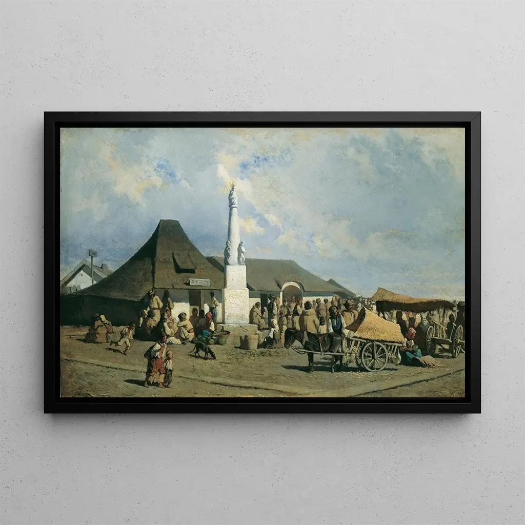 Place du Marché à Szolnok : une scène vibrante de la vie quotidienne. Dans cette reproduction de Place du Marché à Szolnok, l’artiste Johann Gualbert Raffalt capture l’essence d’un moment de vie, où les couleurs éclatantes et les détails minutieux se mêlent pour créer une atmosphère chaleureuse. Les nuances de vert et de bleu dominent le tableau, évoquant la fraîcheur d’un jour ensoleillé, tandis que les touches de rouge et d’orange apportent une dynamique vivante. La technique de Raffalt, qui mêle impressionnisme et réalisme, permet de ressentir presque le mouvement des personnages et l’animation du marché. Chaque élément, des étals de fruits aux passants, contribue à une narration visuelle riche et engageante. Johann Gualbert Raffalt : un témoin de la vie au XIXe siècle. Artiste d’origine autrichienne, Johann Gualbert Raffalt a vécu au XIXe siècle, une époque marquée par des bouleversements sociaux et artistiques. Influencé par le mouvement impressionniste, il a su intégrer des éléments de réalisme dans ses œuvres, offrant ainsi une vision authentique de la vie quotidienne. Raffalt a voyagé à travers l’Europe, capturant des scènes de la vie rurale et urbaine, ce qui lui a permis de développer un style unique. Sa capacité à immortaliser des moments éphémères fait de lui un artiste important de son temps, dont les œuvres continuent d’inspirer et d’émerveiller. Une acquisition décorative aux multiples atouts. La reproduction de Place du Marché à Szolnok est un choix idéal pour embellir votre intérieur, que ce soit dans un salon, un bureau ou une chambre. Sa qualité d’impression et sa fidélité aux couleurs originales garantissent un attrait esthétique indéniable. Ce tableau apporte une touche de vie et de couleur à n’importe quel espace, tout en suscitant des conversations autour de l’art et de la culture. En choisissant cette toile, vous optez pour une œuvre qui non seulement décore, mais enrichit également votre environnement de son histoire et de son charme intemporel.