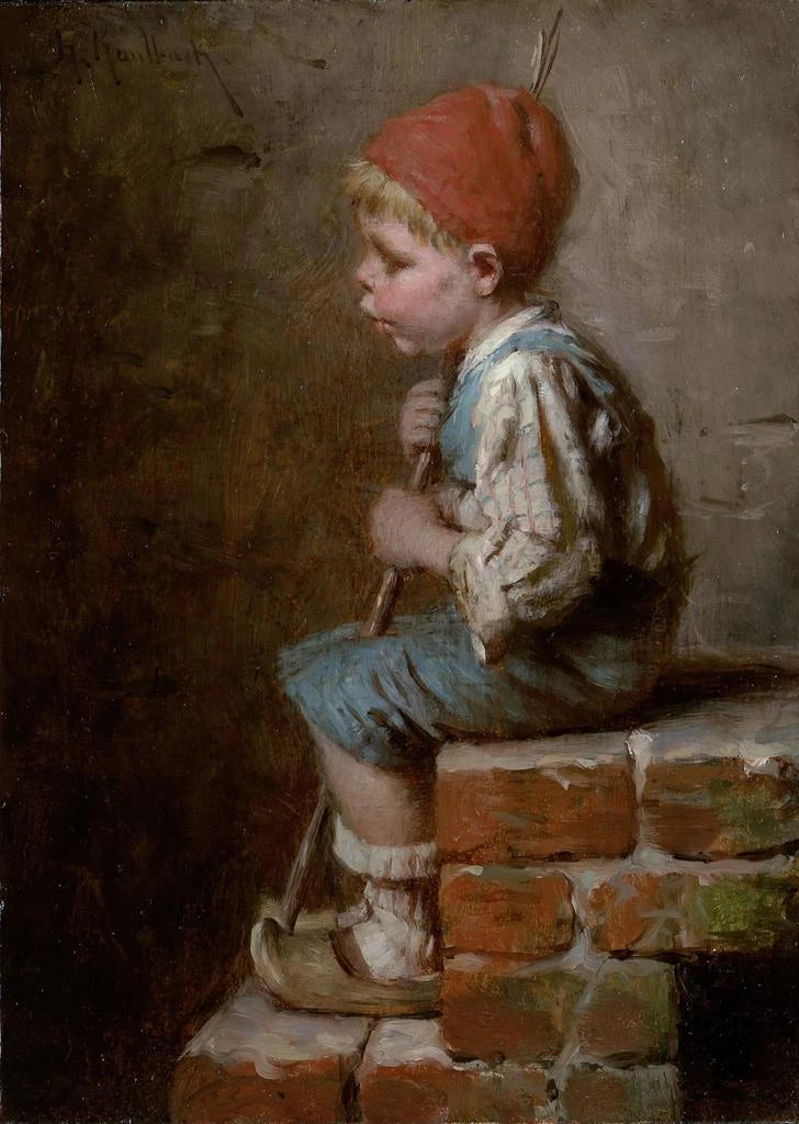 Målning av en pojke som sitter och visslar - Hermann von Kaulbach | Konsttryck