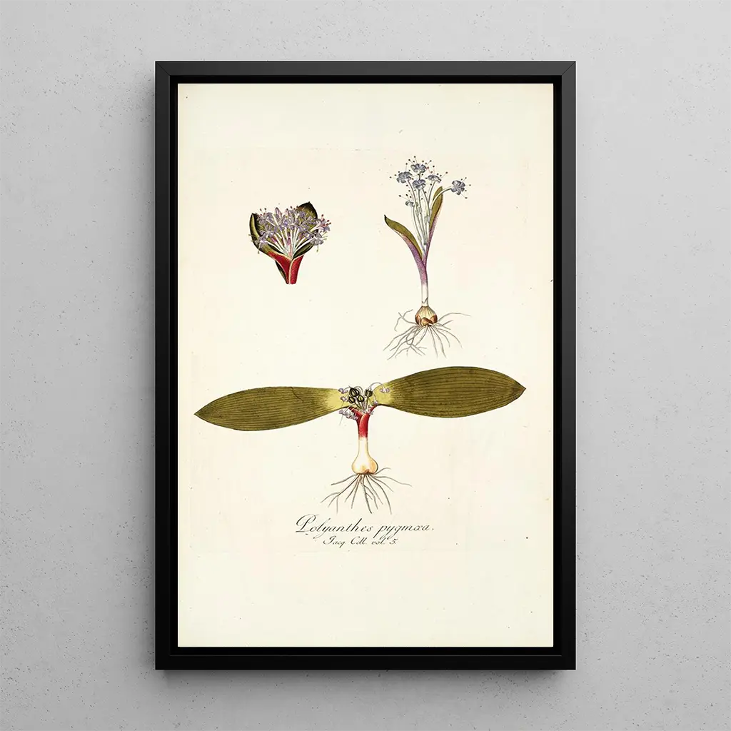 Nikolaus Joseph Freiherr von Jacquin, en framstående figur från 1700-talet, lyckades förena konst och botanik med briljans. Den välkände botanisten reste genom Europa för att studera och illustrera floran. Hans verk, som det av Polyanthes pygmaea, är resultatet av noggrann observation och en passion för naturen. Som konstnär spelade han en nyckelroll i dokumentationen av växtarter, vilket bidrog till framsteg inom botanisk kunskap samtidigt som han lämnade ett varaktigt konstnärligt arv.
