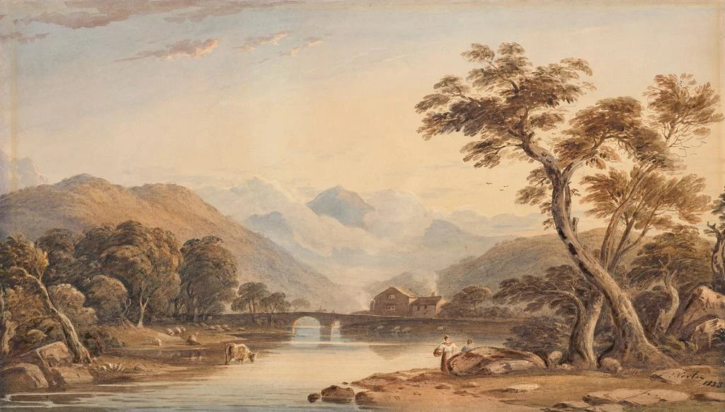 John Varley, actif au début du XIXe siècle, est reconnu comme l'un des précurseurs du paysage romantique en Grande-Bretagne. Influencé par la nature et les grands maîtres du paysage, il a su capturer la beauté des paysages britanniques avec une sensibilité unique. Varley a également joué un rôle important dans l'enseignement de l'aquarelle, inspirant de nombreux artistes de son temps. Le Pont de Beddgelert, réalisé dans un contexte où la nature était célébrée, témoigne de son talent à représenter des scènes de la vie rurale tout en mettant en avant la majesté des montagnes.