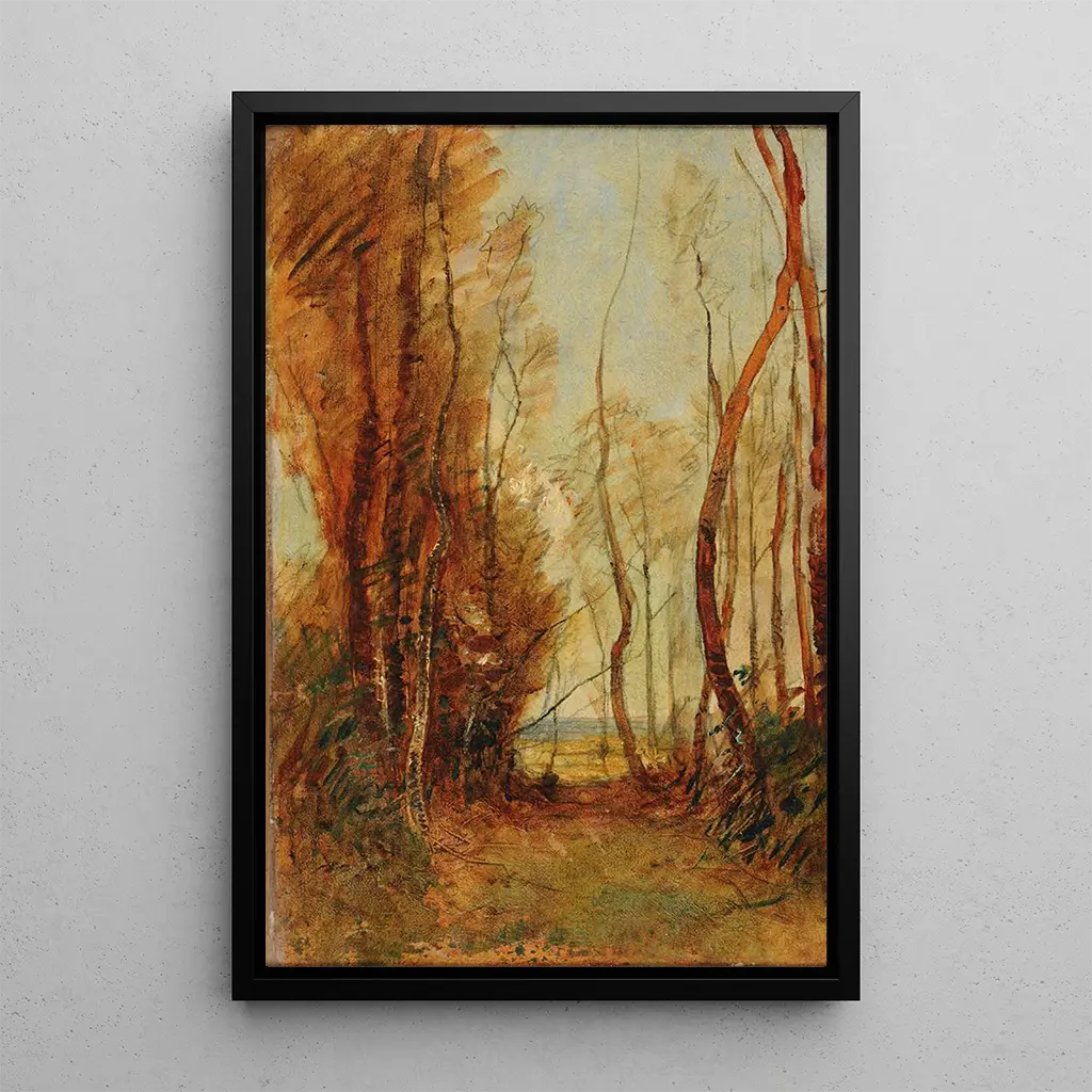 Dans "Peupliers au printemps", François-Auguste Ravier nous transporte au cœur d'un paysage bucolique où la lumière douce du printemps caresse les arbres majestueux. Les peupliers, dressés fièrement, se parent de feuilles éclatantes de vert, tandis que le ciel s'illumine de nuances pastel. La technique de la peinture à l'huile, maîtrisée par Ravier, crée une atmosphère sereine et poétique, invitant le spectateur à une contemplation silencieuse. Les touches de pinceau délicates et les jeux de lumière évoquent une sensation de fraîcheur et de renouveau, typiques de cette saison tant appréciée.