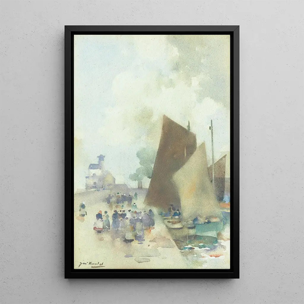 "Port d'Arbroath", ett konsttryck av James Watterston Herald, skildrar med fin känsla skönheten i en skotsk hamn. Nyanser av blått och grönt framkallar vattnets lugn, medan de förtöjda båtarna tillför liv till denna fridfulla scen. Heralds teknik, som kombinerar realism och impressionism, gör att man nästan kan känna den marina atmosfären. Varje detalj, från reflektionerna på vattnet till seglen på båtarna, är noggrant återgiven, vilket bjuder in betraktaren att fördjupa sig i denna poetiska skildring av hamnlivet.