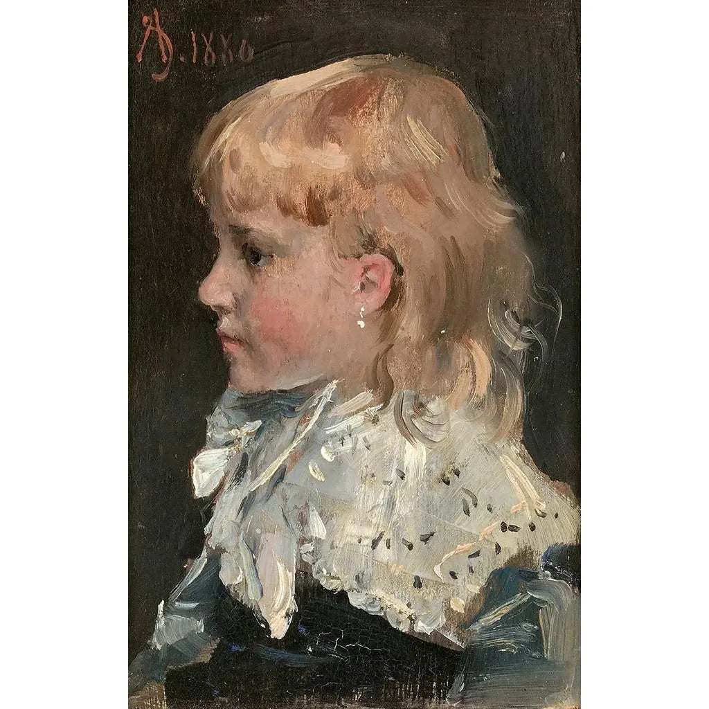 Alfred Stevens, verksam under 1800-talet, är erkänd för sin förmåga att föreviga kvinnor från sin tid, ofta från bourgeoisin. Påverkad av realismrörelsen och den spirande impressionismen, lyckas han kombinera klassisk teknik med modernitet. Hans verk utmärks av en särskild uppmärksamhet på detaljer och ljus, vilket ger honom en unik plats i konsthistoria. Stevens har fångat sin tids anda och erbjuder en både intim och universell bild av kvinnan. "Portrait d'Alice Gamby" ingår i denna tradition och visar hans skicklighet att omvandla vardagliga ögonblick till mästerverk.