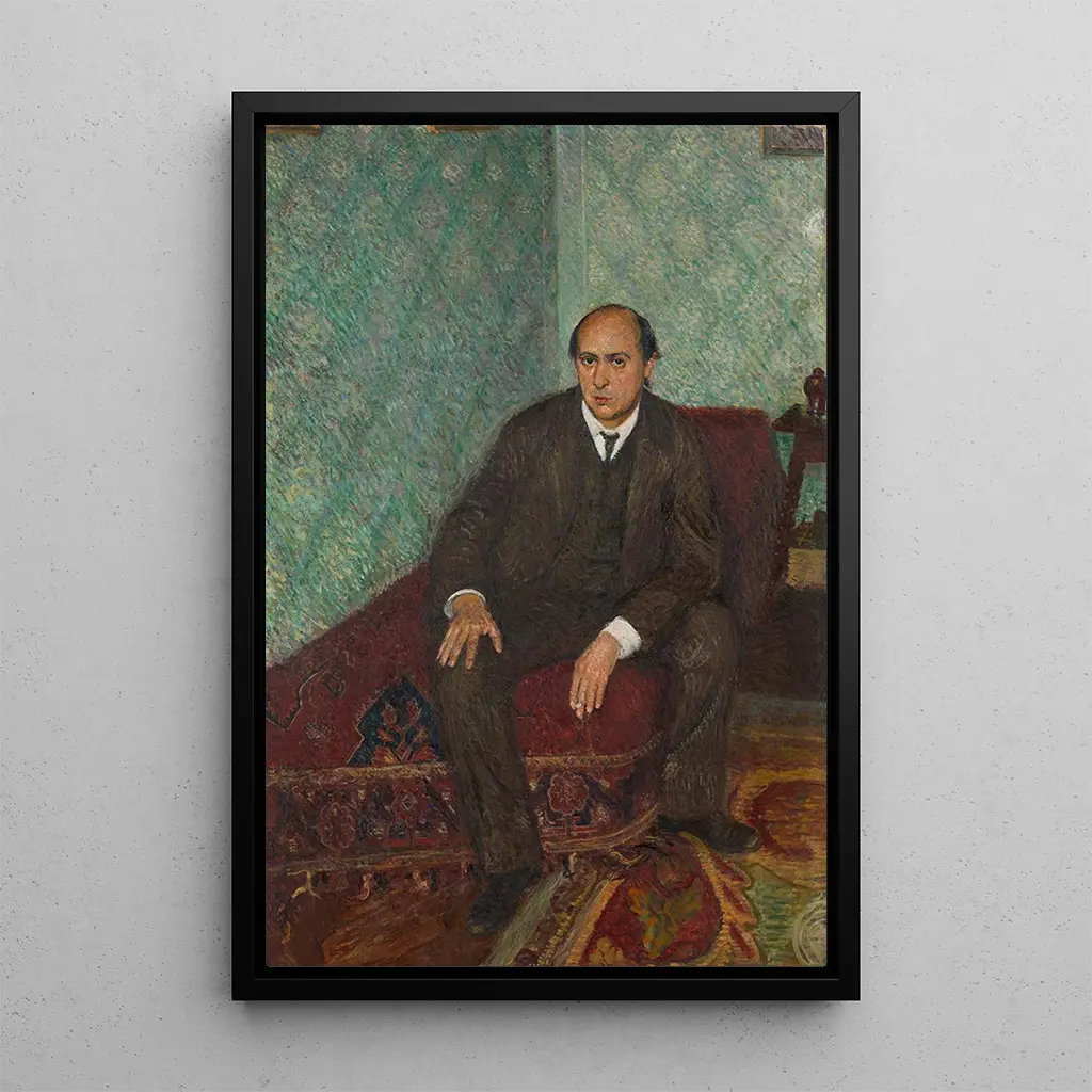 "Portrait d'Arnold Schönberg" av Richard Gerstl är ett konsttryck som fångar essensen av motivet genom djärva penseldrag och en färgpalett som vibrerar av liv. Gerstl, som en pionjär inom expressionismen, använder mörka nyanser och slående kontraster för att skapa en atmosfär som är både oroande och fängslande. Kompositionen, centrerad kring Schönbergs ansikte, avslöjar en psykologisk djup som inbjuder betraktaren att dyka in i denna revolutionära kompositörs själ. Varje detalj, från skuggor till ljus, verkar berätta en historia, vilket gör detta konsttryck till ett verkligt mästerverk av introspektion.