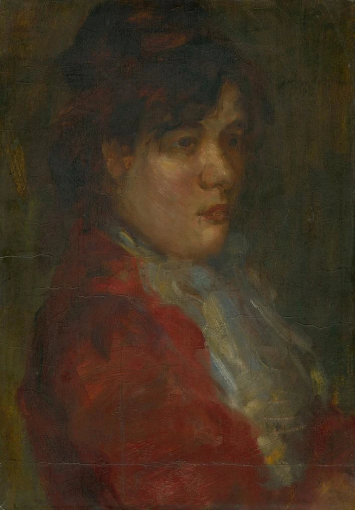 Konsttryck | Porträtt av ung flicka i rött - Konstantin Korovin
