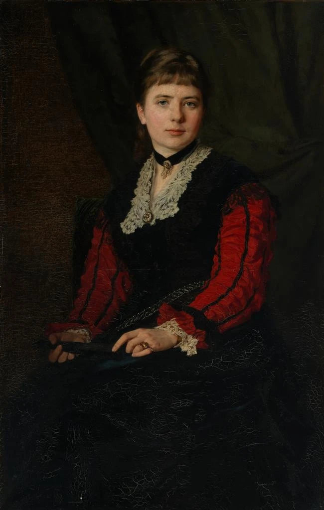 Le "Portrait de Gunhild Gude" est une œuvre captivante qui dépeint une femme au regard pénétrant, révélant une profondeur émotionnelle saisissante. Les couleurs délicates, mêlant des teintes douces de rose et de bleu, créent une atmosphère intimiste et chaleureuse. La technique de peinture à l'huile, maîtrisée par l'artiste, permet de rendre les textures de la peau et des vêtements avec une précision remarquable. L'arrière-plan flou met en valeur le sujet principal, accentuant son élégance et sa grâce. Cette toile invite à la contemplation, suscitant des émotions et des réflexions sur la beauté et la féminité.