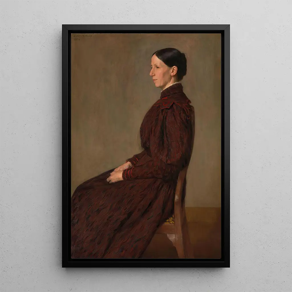Konsttrycket av fru Anna Dick:s porträtt av Erik Werenskiold är en verklig hyllning till kvinnlig skönhet och sofistikerad elegans. I detta verk använder konstnären delikata färger och ljusspel för att framhäva hennes ansikte, vilket avslöjar en emotionell djup. De noggranna detaljerna i kläder och accessoarer tillför en realismens dimension, medan fru Dicks lugna uttryck utstrålar en tidlös grace. Denna målning, både intim och majestätisk, bjuder in betraktaren att reflektera över den personliga historien bakom kvinnan.