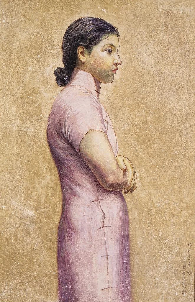 Konsttrycket "Portrait d'une femme" av Okada Saburōsuke är ett fängslande verk som framkallar grace och elegans. Kompositionen utmärker sig genom mjuka och harmoniska färger, där pastellnyanser subtilt blandas för att skapa en delikat atmosfär. Konstnärens teknik, som kombinerar precision och flyt, gör det möjligt att fånga inte bara ansiktsdragen utan även själva essensen av kvinnlighet. Varje detalj, från blicken till frisyren, är noggrant utarbetad och inbjuder betraktaren att fördjupa sig i en värld av förfining och eftertanke.
