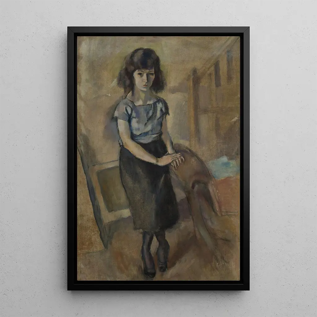 Dans "Portrait d'une femme debout", Jules Pascin capture la grâce et l'élégance d'un modèle féminin, figé dans une pose à la fois naturelle et majestueuse. Les couleurs vives et contrastées, associées à des lignes fluides, donnent vie à cette représentation, où chaque détail, du visage aux vêtements, est soigneusement élaboré. L'atmosphère qui se dégage de cette toile est empreinte de douceur et de mystère, invitant le spectateur à s'interroger sur l'histoire de cette femme. Pascin réussit à transmettre une émotion palpable, rendant cette œuvre à la fois personnelle et universelle.