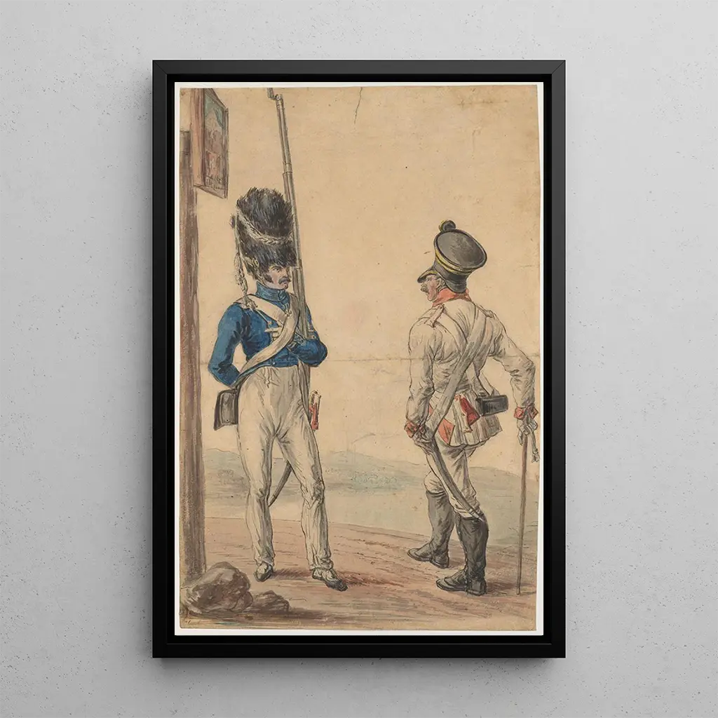 Konsttrycket "Vid gränsövergången" är ett dekorativt föremål som kommer att berika vilket som helst inre, oavsett om det är i ett vardagsrum, ett kontor eller ett sovrum. Dess tryckkvalitet och trohet mot originaldetaljer gör detta konsttryck till ett perfekt val för konst- och historieälskare. Den estetiska attraktionen hos detta verk ligger i dess förmåga att berätta en historia, väcka känslor och väcka reflektioner. Genom att integrera detta konsttryck i din inredning, tillför du inte bara en konstnärlig touch, utan också ett samtalsämne som kan fängsla dina gäster.